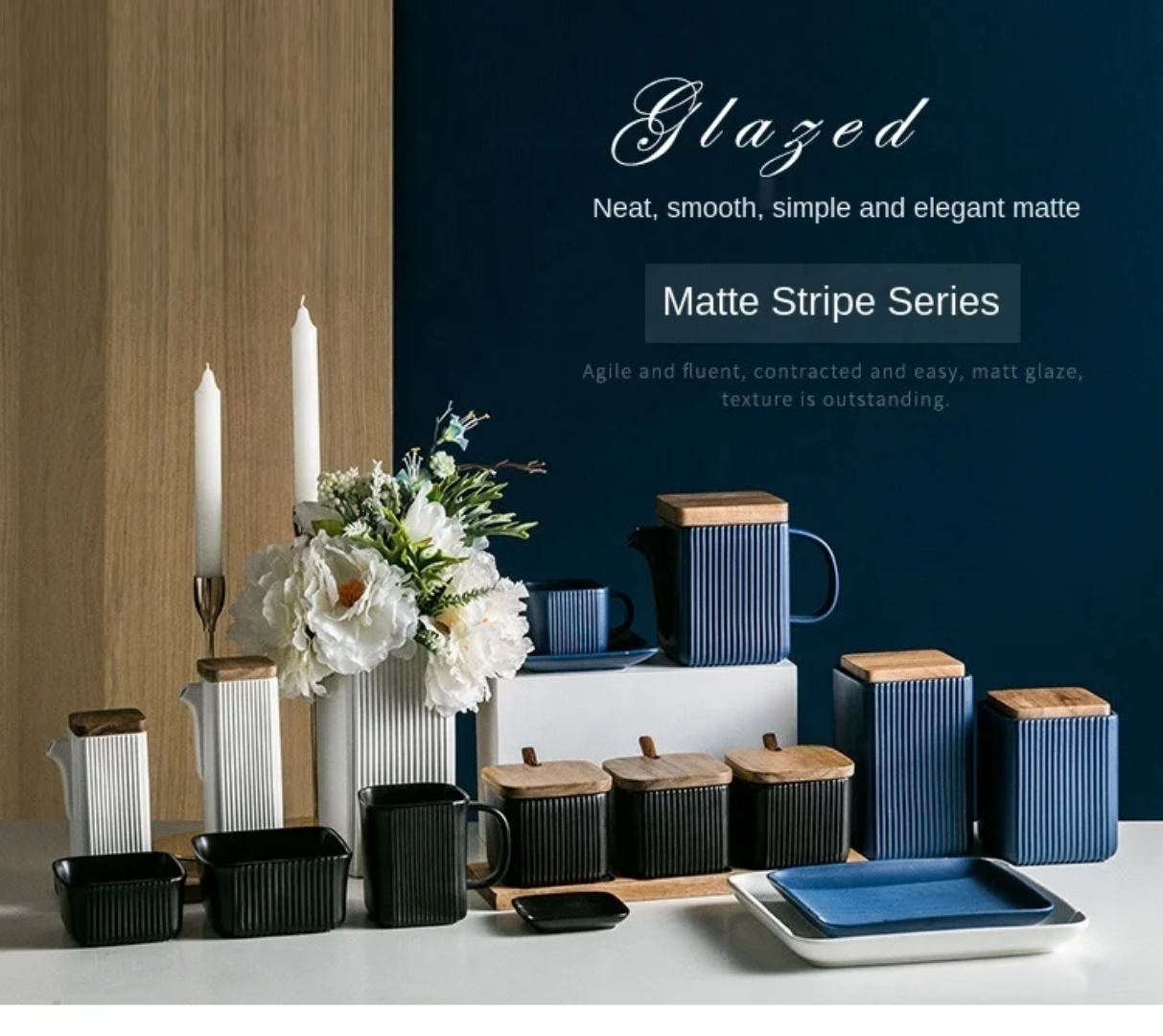 Creative Square Straight Ceramic Seasoning Jar Set – Elegant and Functional Kitchen Storage Solution