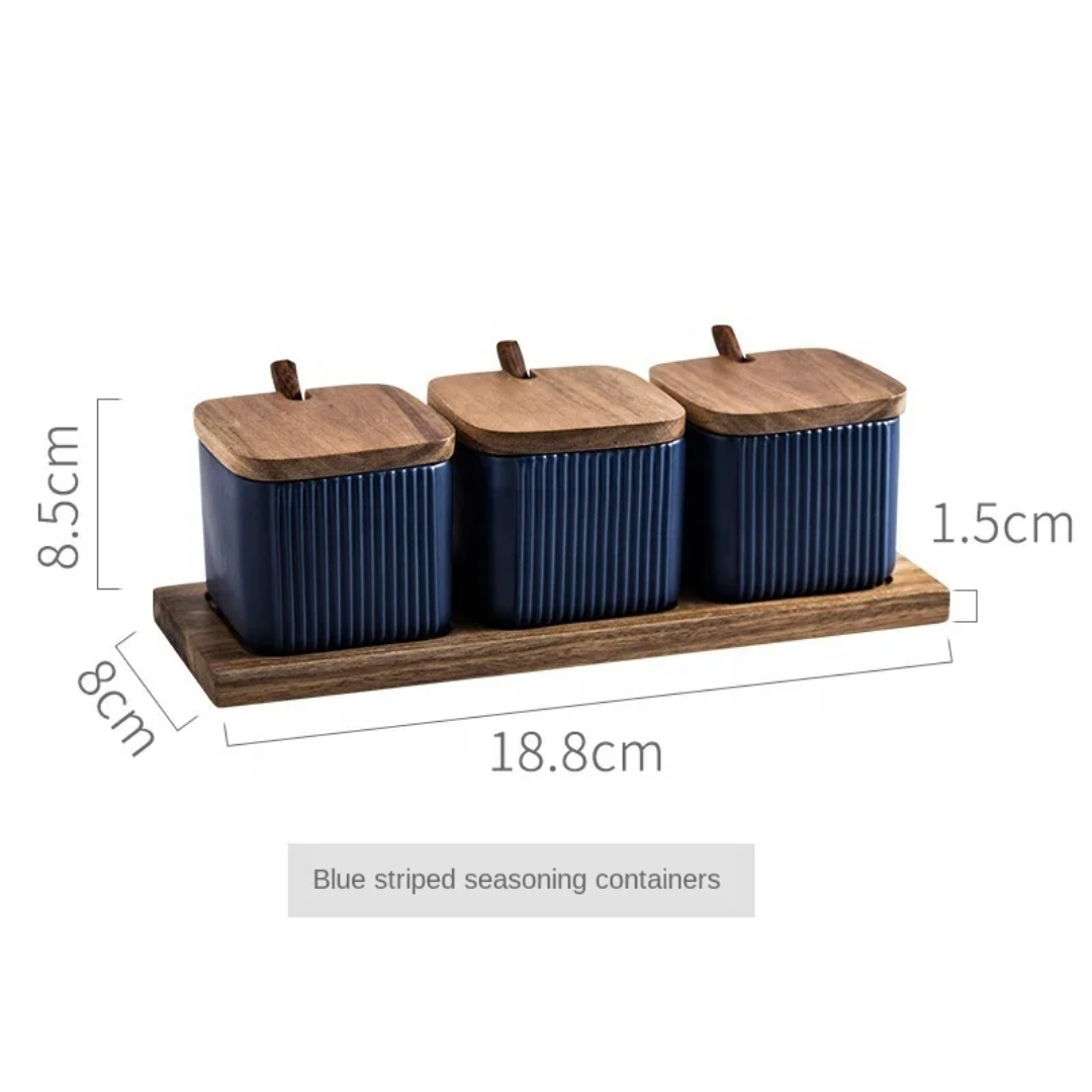 Set of 3 Creative Square Ceramic Seasoning Jars – Elegant and functional spice storage in blue, white, or black. Each jar features an airtight lid, spoon, and sleek straight design, perfect for salt, sugar, condiments, or tea. Durable, easy to clean, and space-saving for modern kitchens.