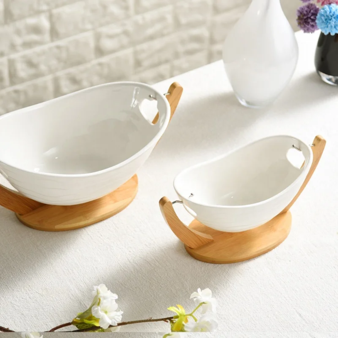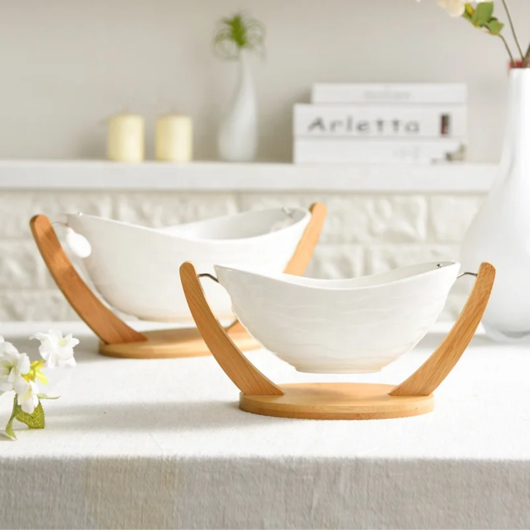 Bring timeless elegance and modern design to your table with this premium square ceramic fruit plate framed in a sleek wooden holder. Perfectly balancing style and practicality, this versatile piece serves as both a functional dish and a decorative accent for your home.