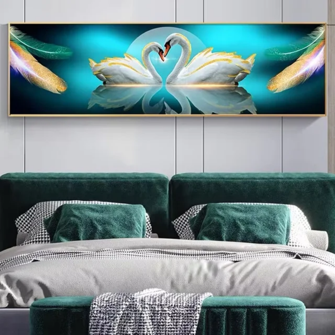 Transform your walls with this Luxury Swan Crystal Diamond Painting Wall Frame Picture, a breathtaking fusion of abstract modern art and porcelain-inspired elegance. Featuring two graceful swans symbolizing love and harmony, this wall décor is intricately designed with premium crystal rhinestones that shimmer beautifully under natural or artificial light.