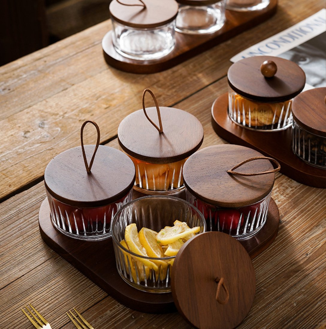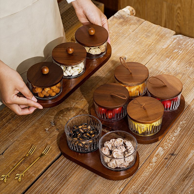 - High-Quality Build: Sturdy wooden tray with heat-resistant, thick glass bowls.