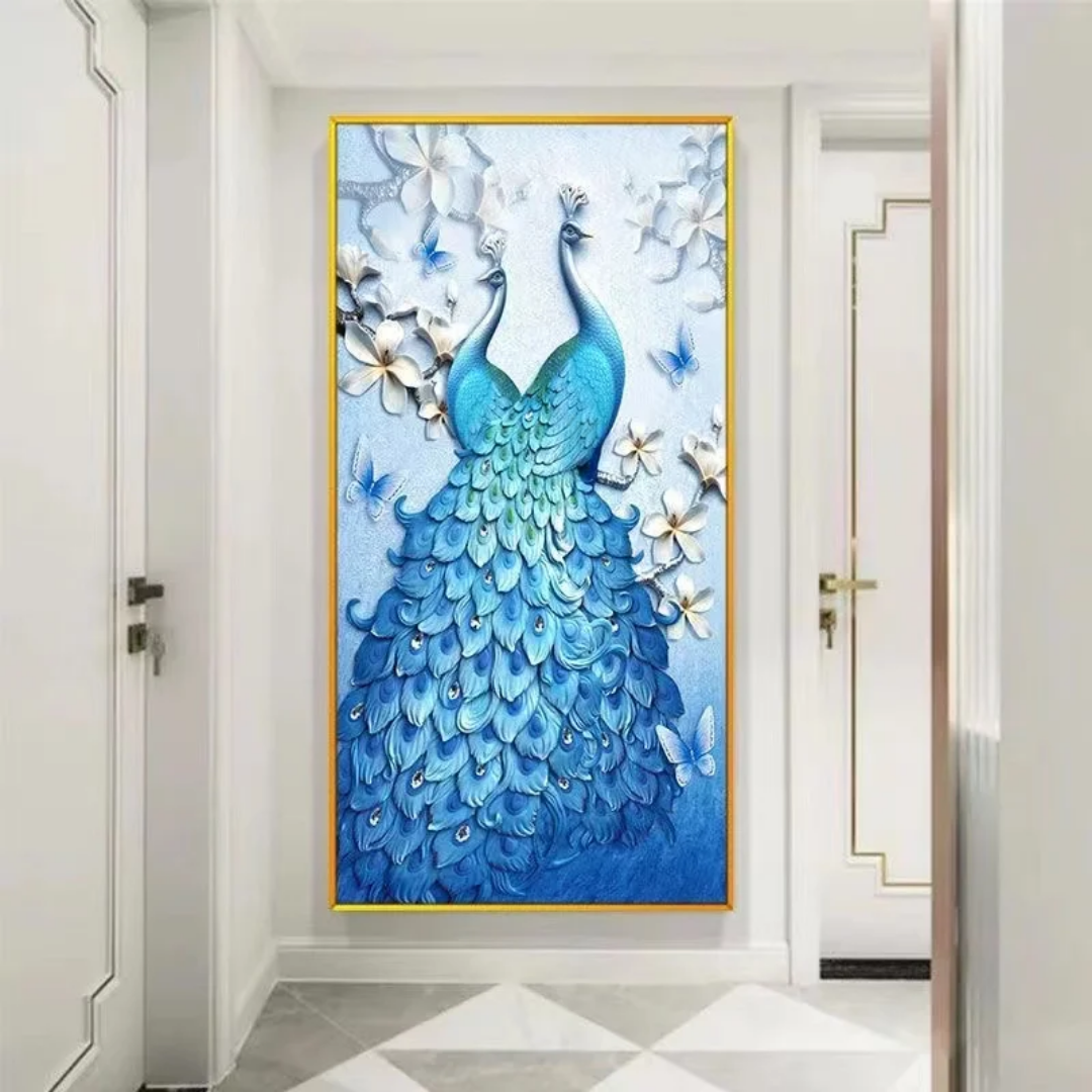 Add sophistication and charm to your living space with this Peacock Decorative Wall Painting, featuring a stunning modern design with diamond-embossed details. Crafted from eco-friendly materials and premium crystal porcelain, this mural combines luxury with sustainability, making it an ideal choice for living rooms, corridors, or porch décor.