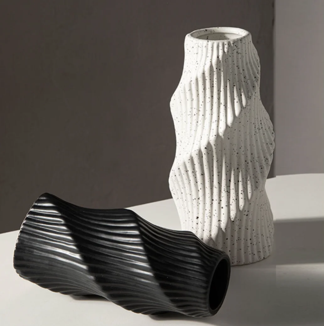 Bring modern simplicity and elegance to your home – style your space with this black and white ceramic vase today!